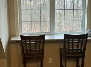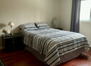 • House located in a quiet neighborhood surrounded by trees, trails nearby, Kitchen with dishes, cutlery, kettle, fridge stove dishwasher. Large coat closet , cozy sitting area